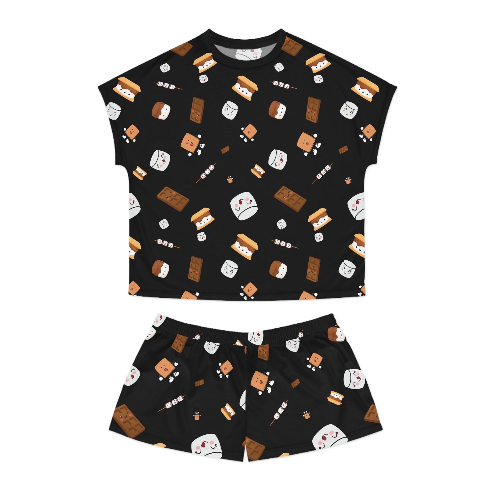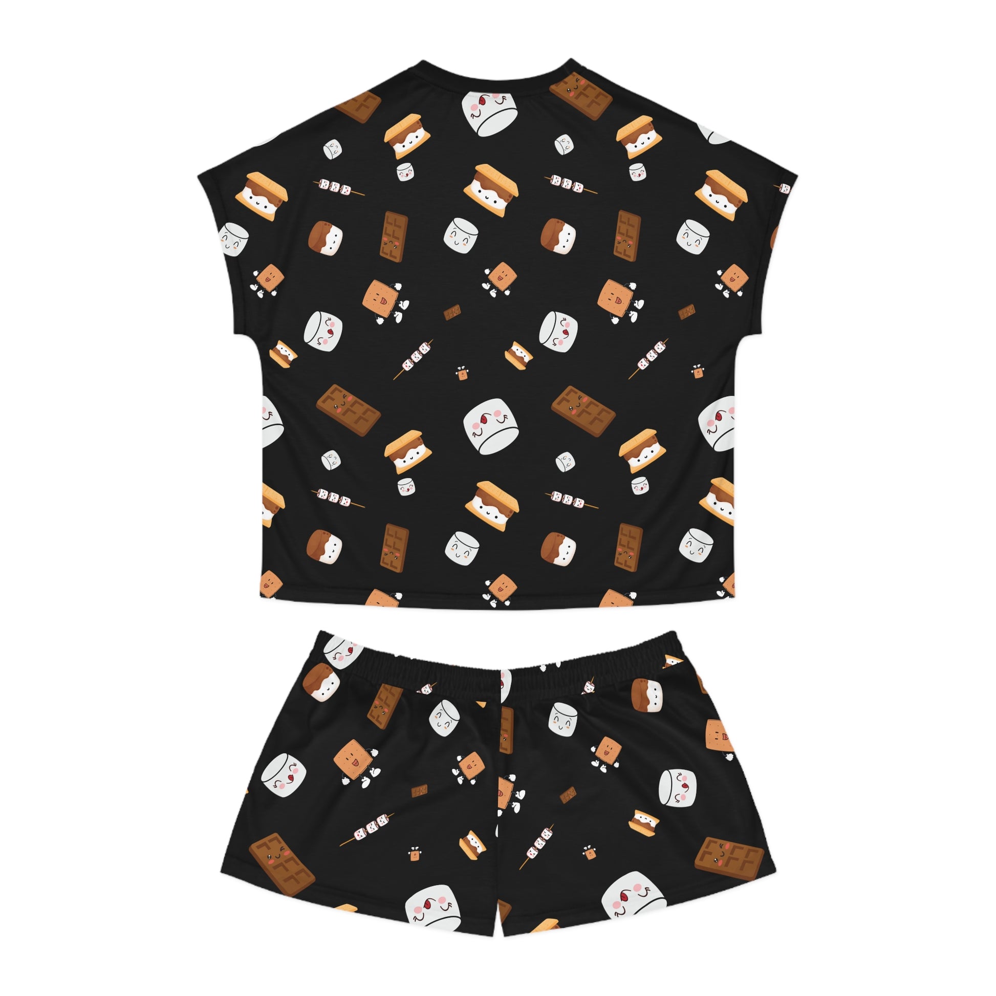 Women's Short Pajama Set-Cutesy S'more's Pattern-Black