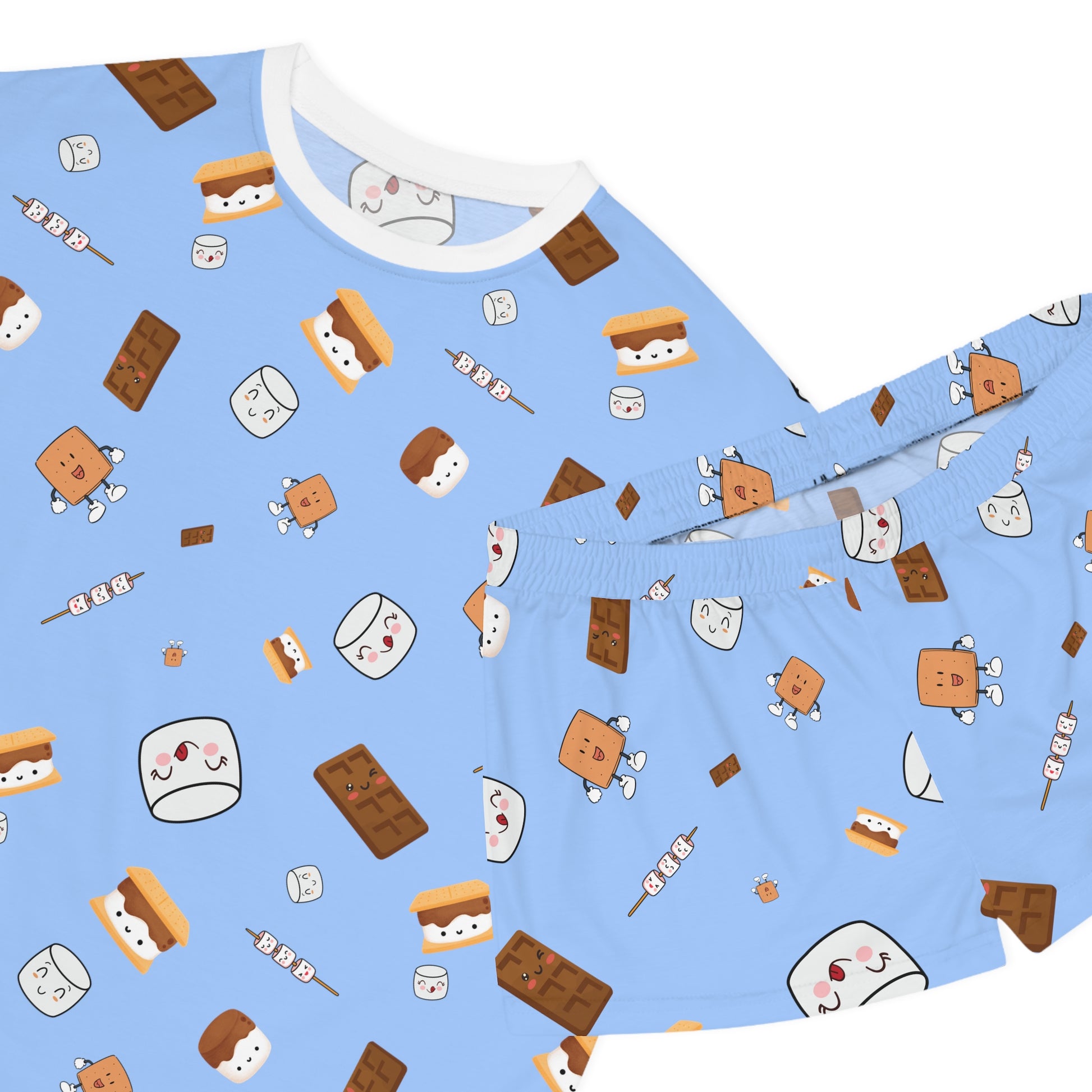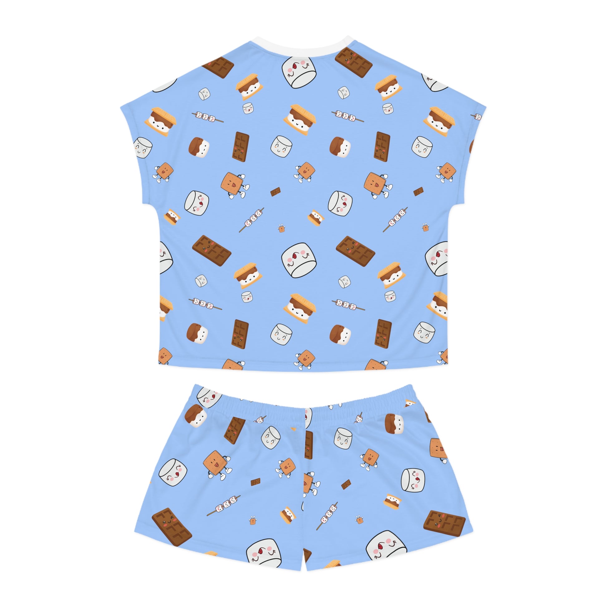 Women's Short Pajama Set-Cutesy S'More's Pattern-blue