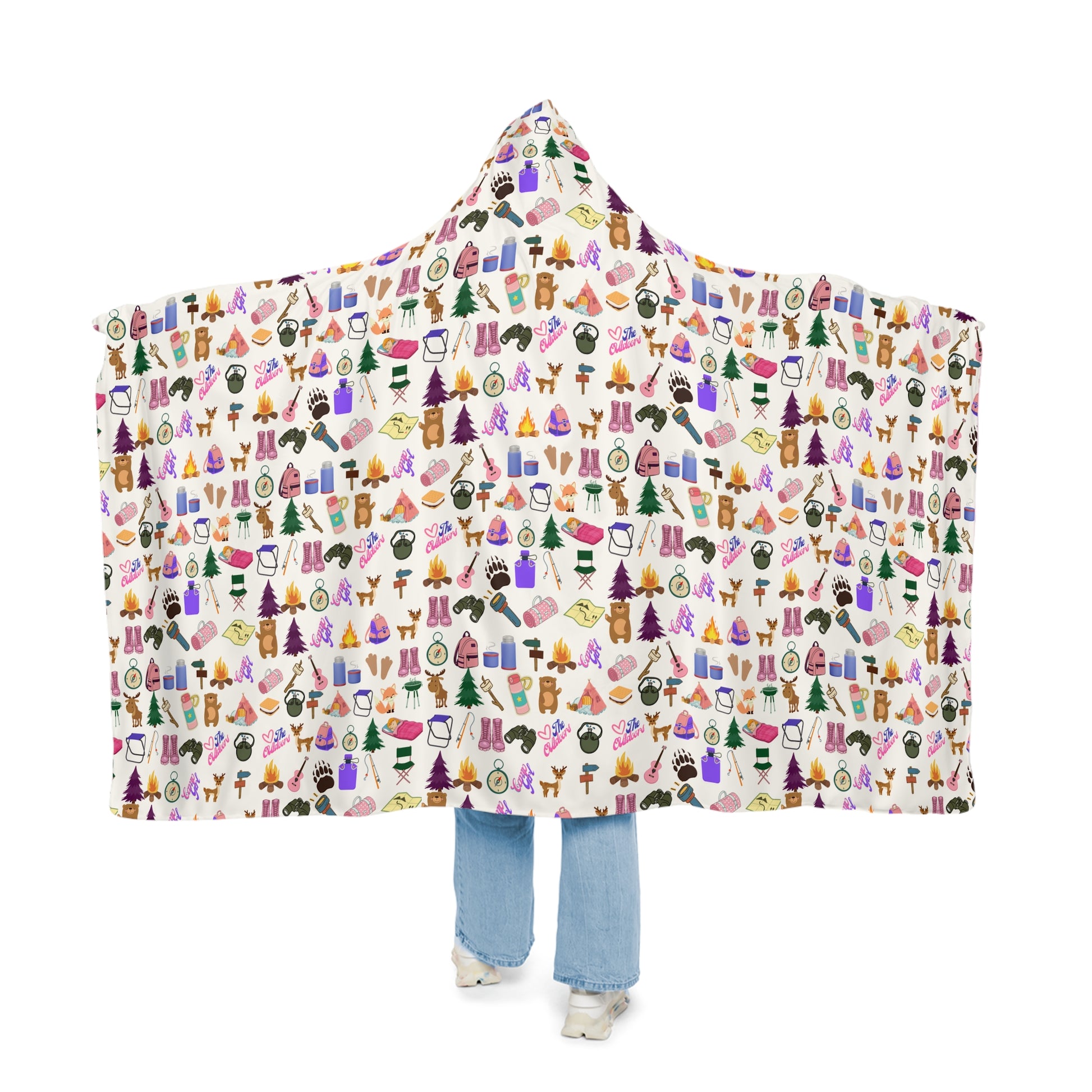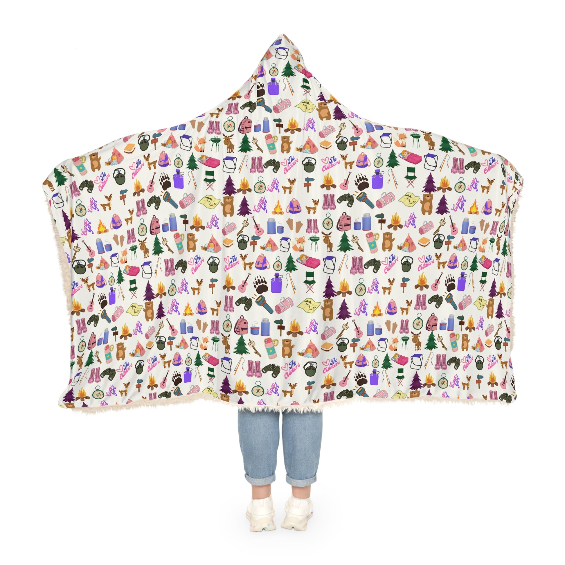 Hooded Snuggle Blanket-Girls Camp Patter-White
