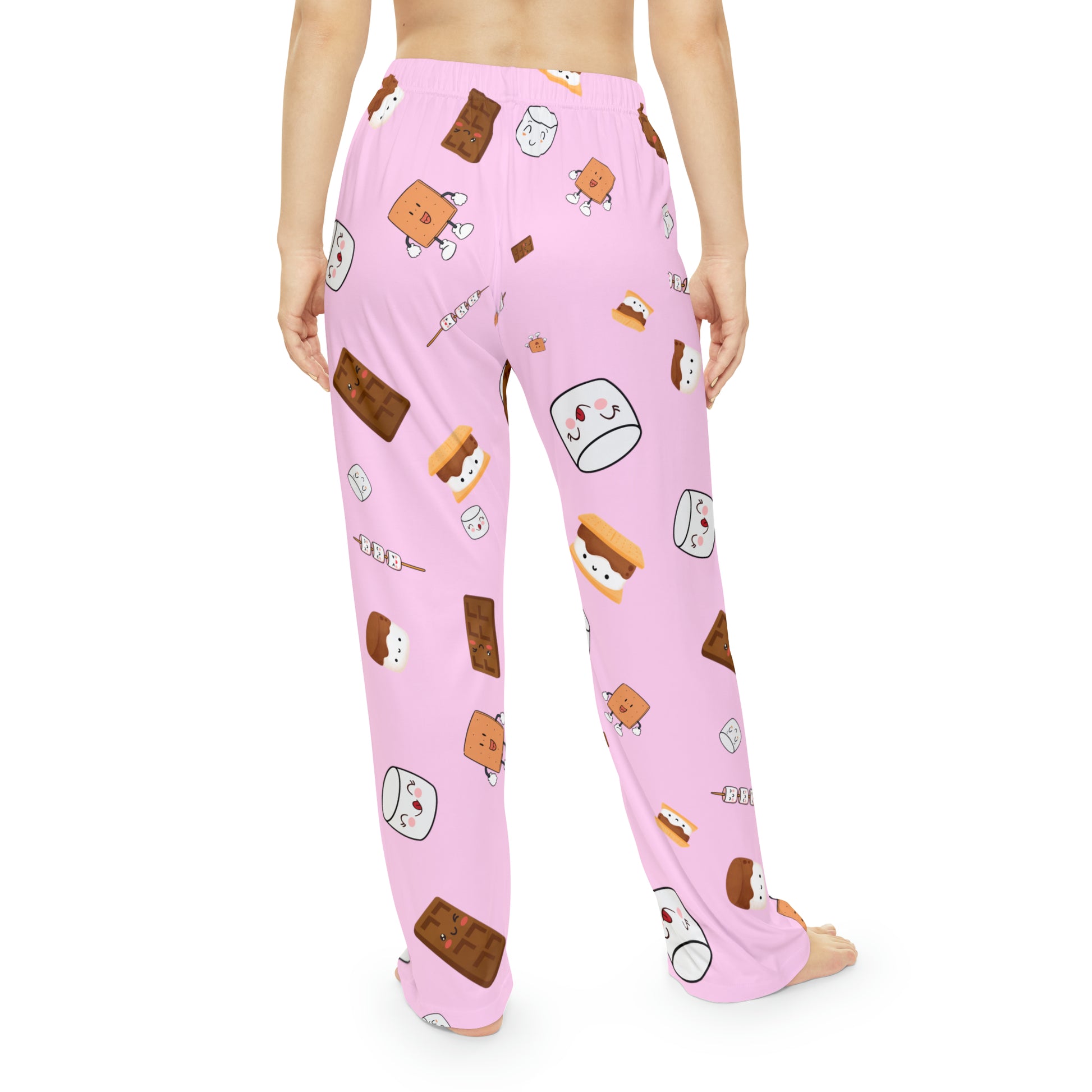 Women's Pajama Pants-Cutesy S'more's Pattern-Pink